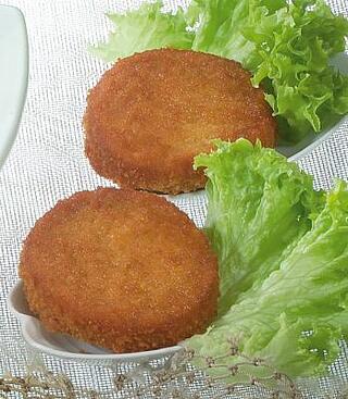 ca. 25 Fischfrikadellen aus Seefisch, praktisch grätenfrei, fein zerkleinert, pikant gewürzt, geformt, paniert, gebraten.